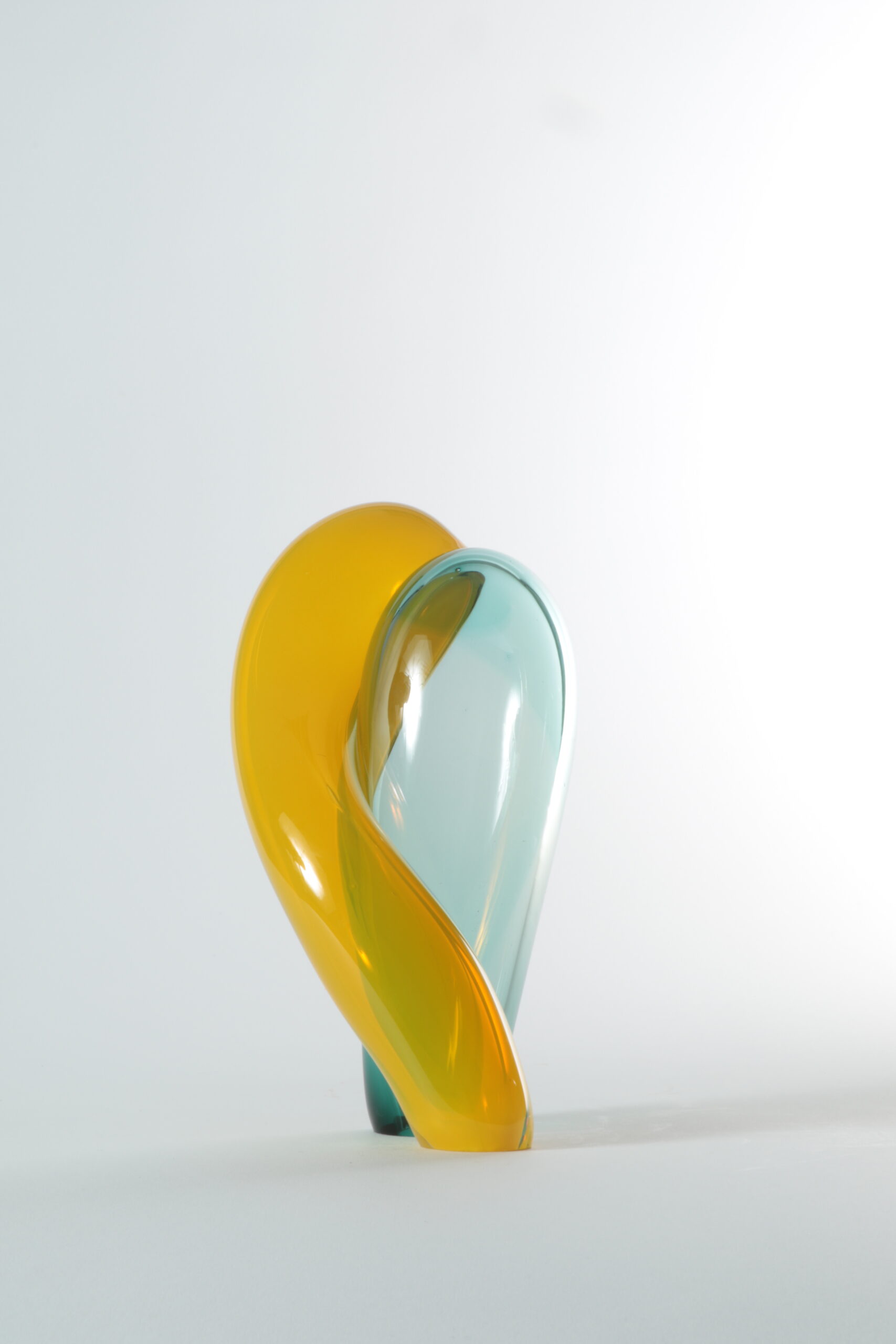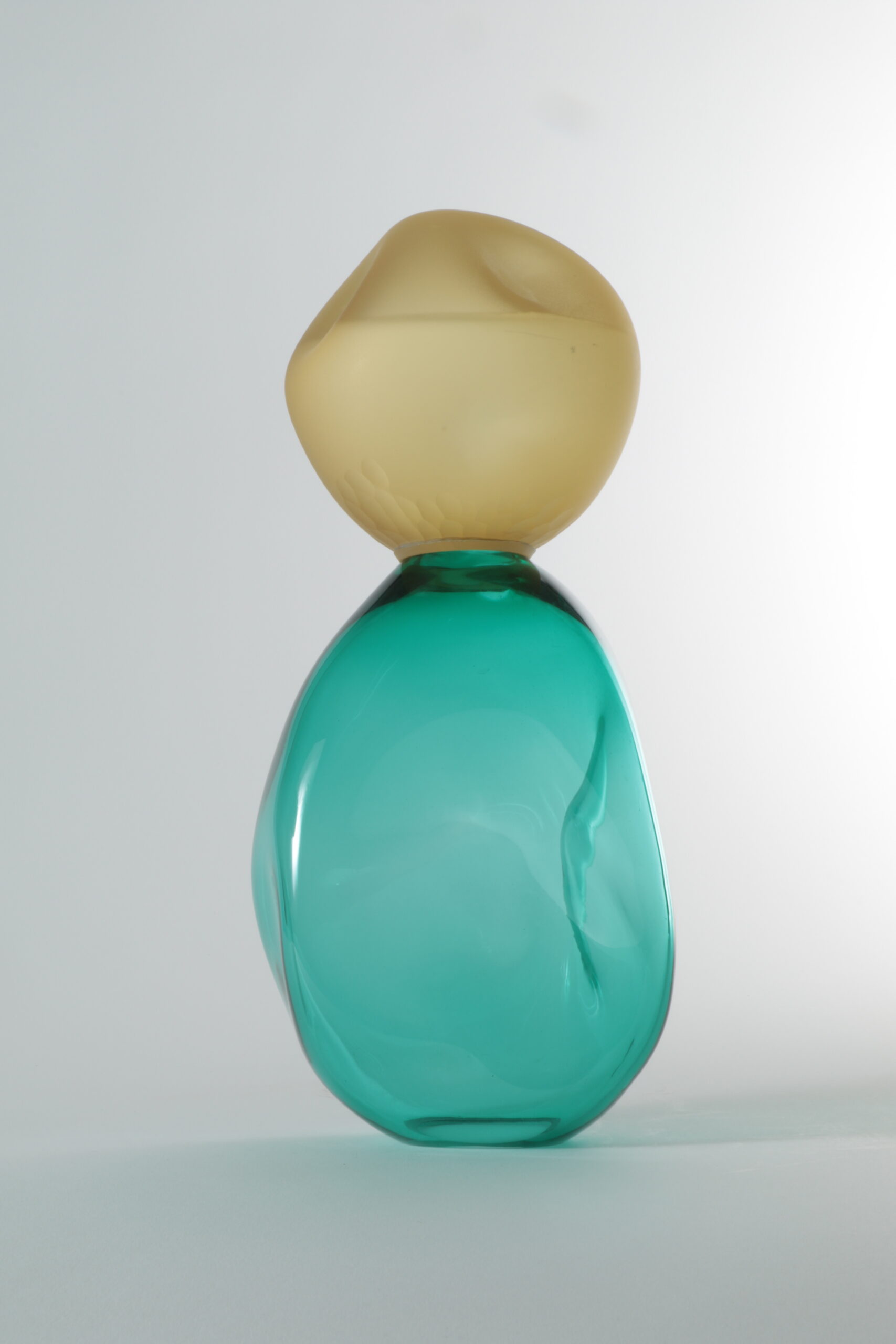 Pièces uniques soufflées avec différentes matières, journaux, briques, feuillages et autres.